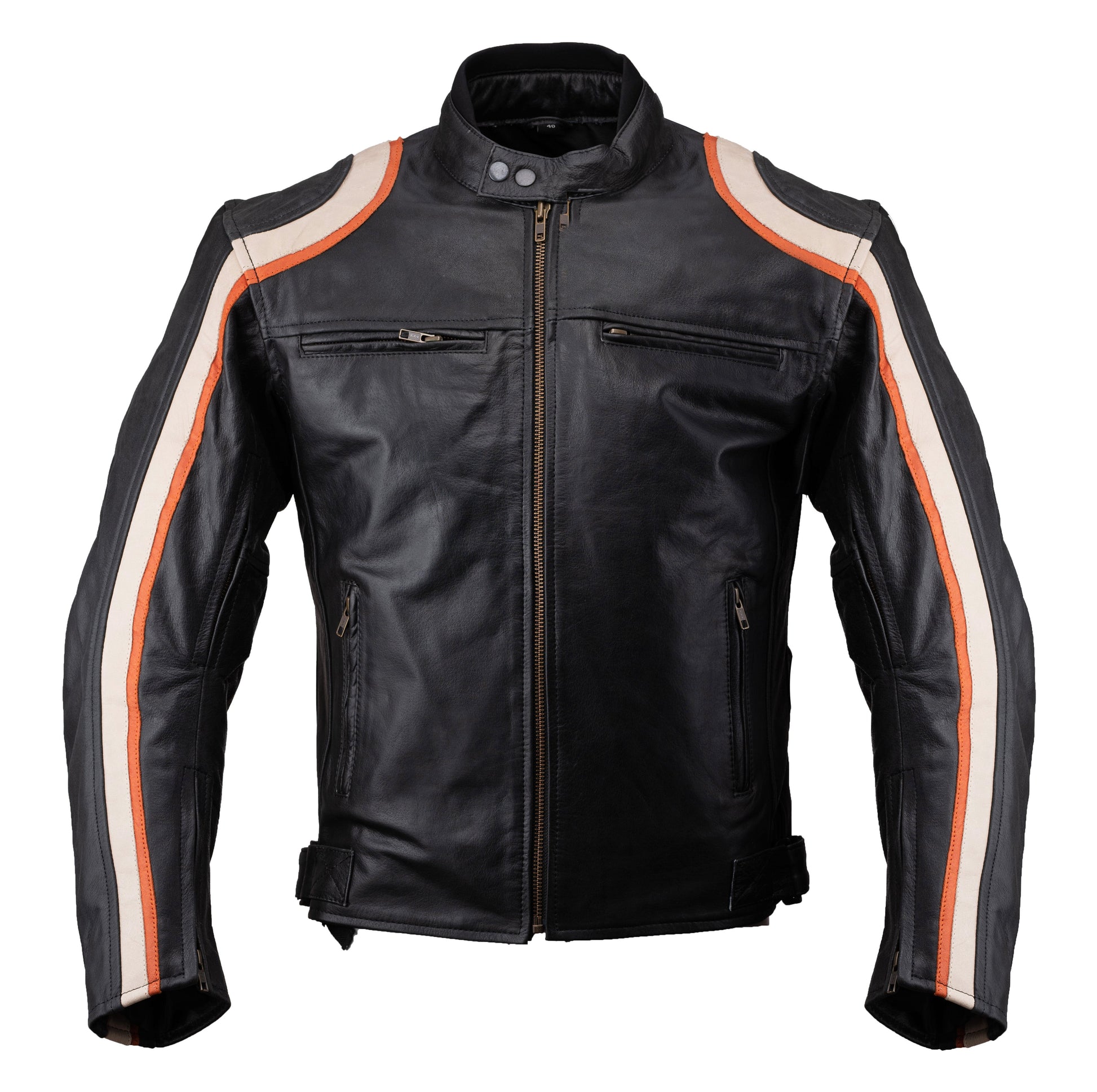 The Racer #77 Leather Motorbike Jacket is made from 100% Soft 1.1-1.3mm drum-dyed cowhide leather, which offers a high level of comfort and style. The jacket is fully lined with quilted black for strength and durability.